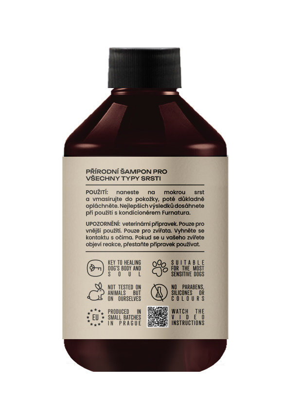 Massage into wet coat from roots to tips. Rinse thoroughly. For best result, finish by applying Furnatura’s Rose conditioner. Can be diluted with water (for easier application).